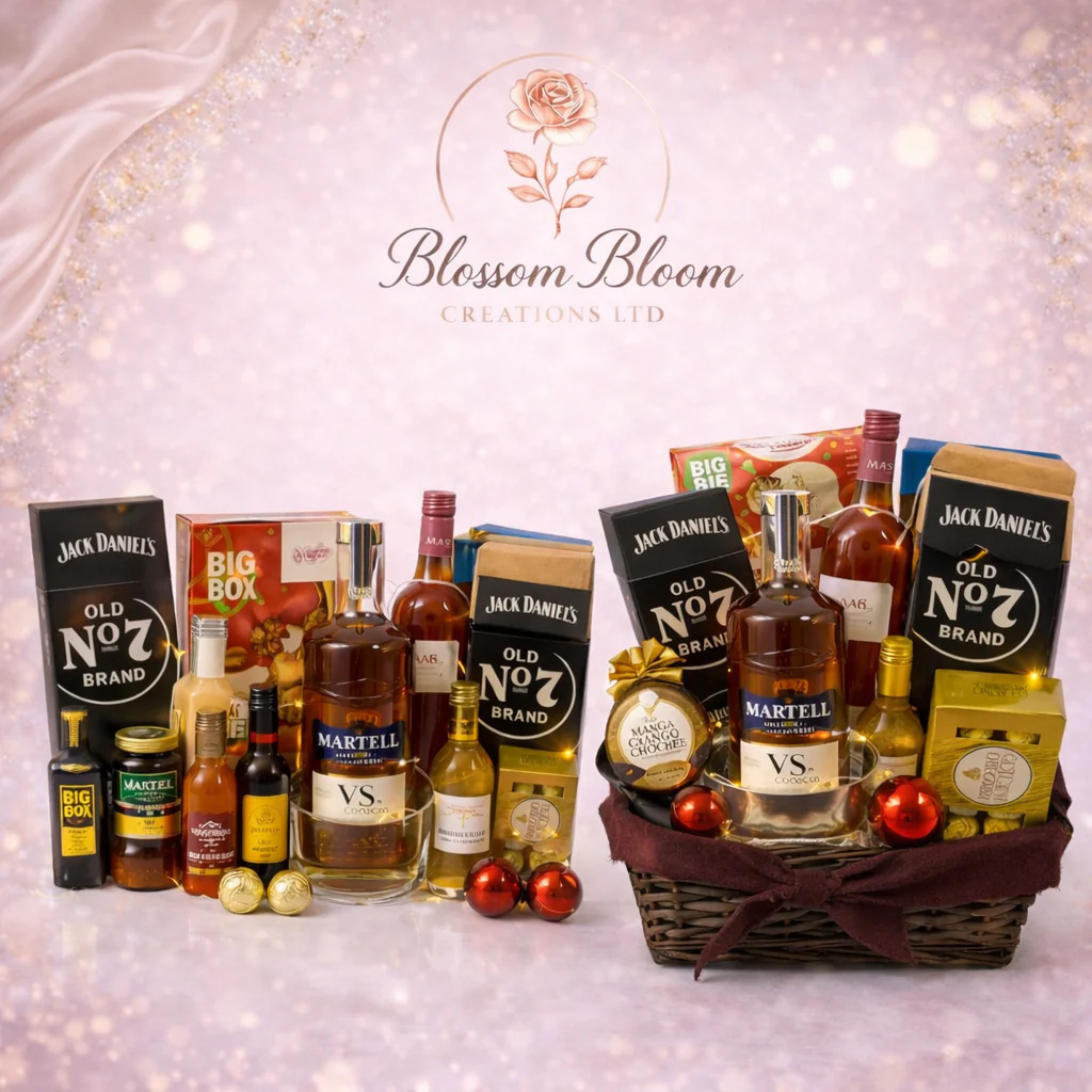Designed with the whole family in mind, this beautifully presented hamper combines premium spirits, indulgent chocolates, and thoughtful lifestyle gifts for both him and her. At the heart of the hamper sits a refined Martell VS Cognac, complemented by iconic Jack Daniel’s Old No.7, gourmet confectionery, and a selection of practical yet stylish gifts that make this hamper truly unique.